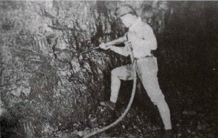 3.1934年、空気圧縮式削岩機を使用する朝鮮人炭資料は、「大牟田市の100年」の89ページ。