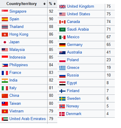 スレッド「国や地域ごとの公共の場でのマスク着用率」より。